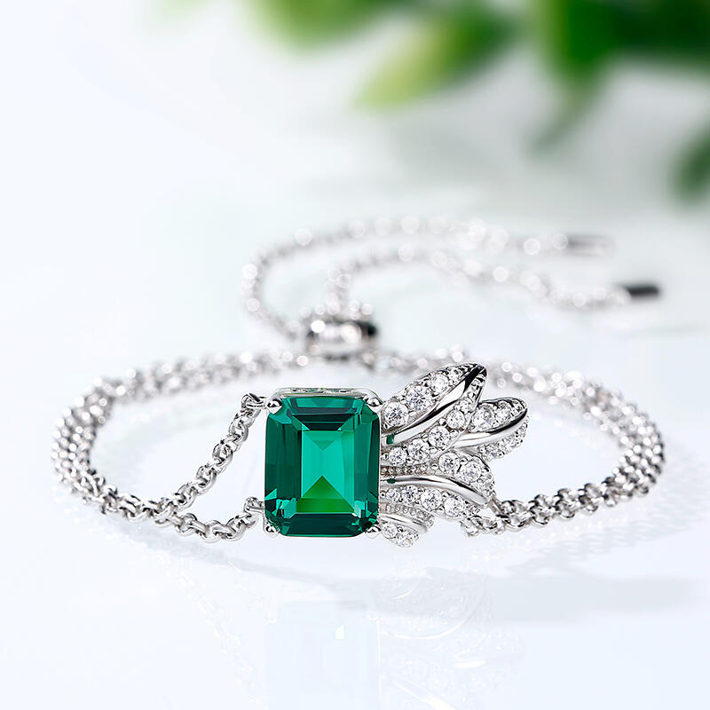 Jeulia Leaf Design Emerald Cut Sterling Silver Jewelry Set