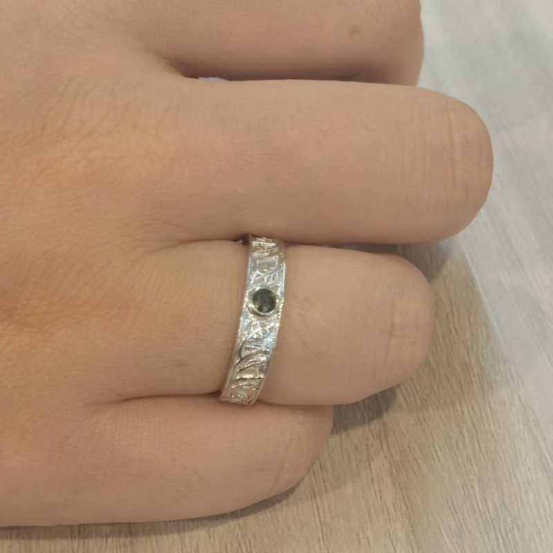 This Jeulia Moss Agate Wedding Band for Men features frosted silver band etched with leaf veins so precise that they replicate real oak growth rings under magnification. A moss agate cabochon nests flush at center, its dendritic patterns echoing the engraved foliage—one part forest floor, one part celestial nebula. Width calibrated to 5mm: substantial enough for rough hands, refined enough for boardroom vows.