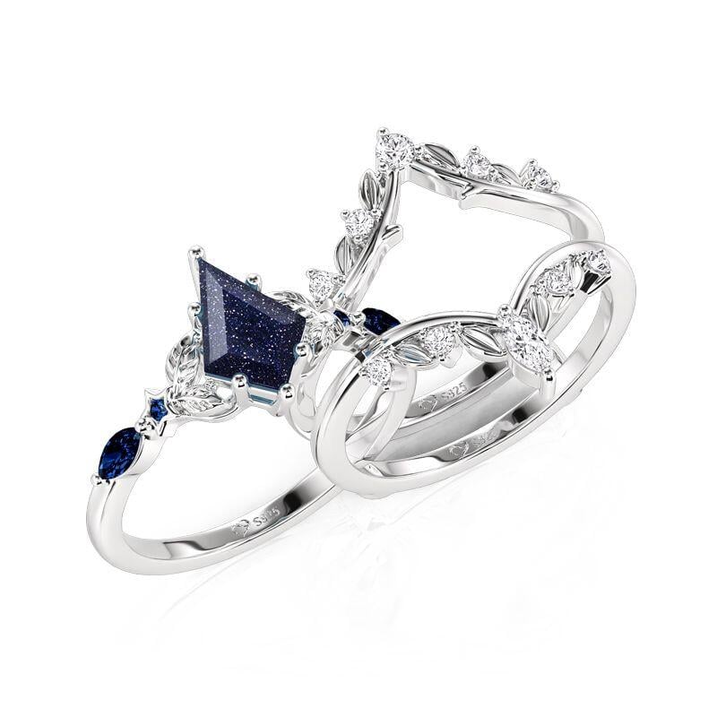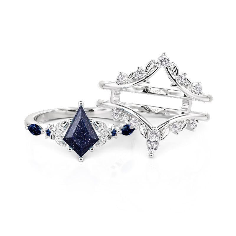 Jeulia Leaf Wrap Kite Cut Blue Sandstone Engagement Ring Set