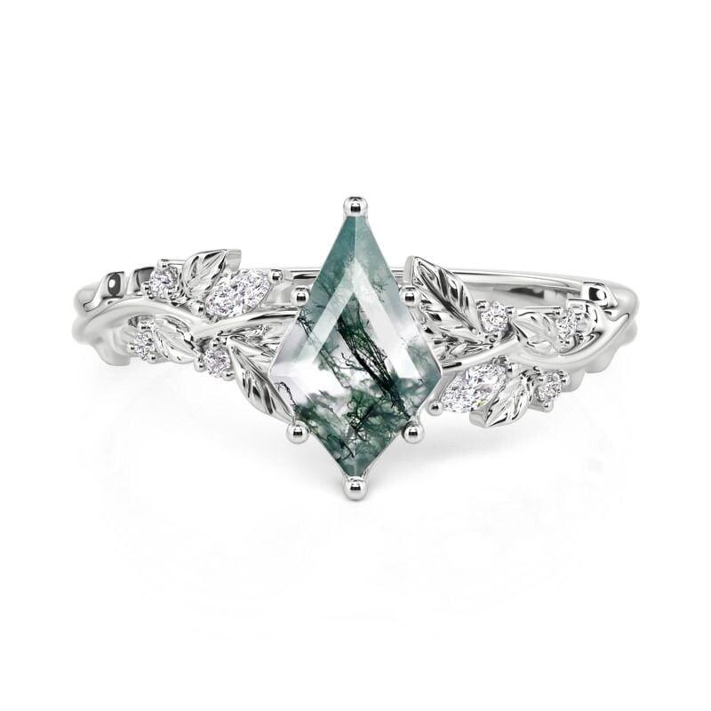 Jeulia Leaf-Wrapped Kite Cut Moss Agate Engagement Ring