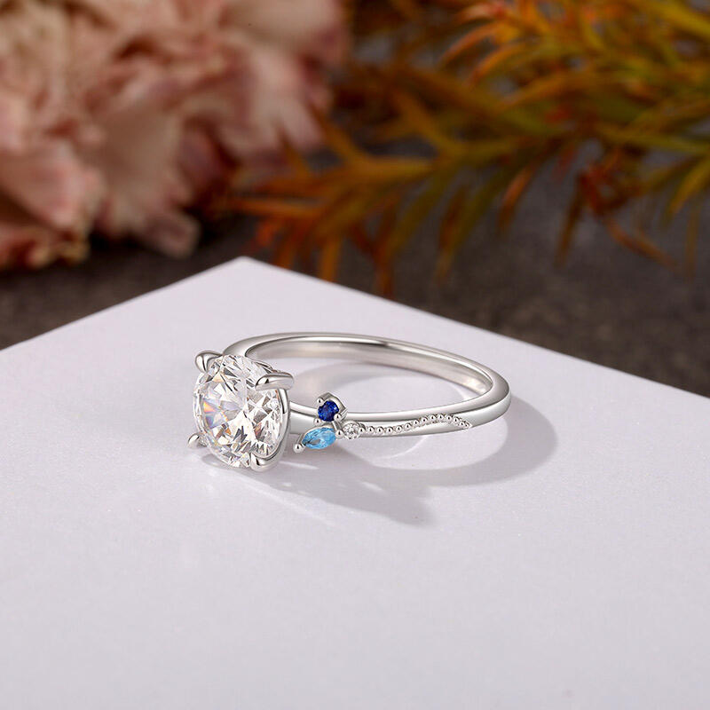 Embrace nature's timeless beauty with our leaves design custom engagement cluster ring. At the heart of this exquisite engagement ring is a captivating round main stone, flanked on either side by delicate leaf elements crafted from smaller shimmering stones. The intricate details of the milgrain design branches add a touch of elegance and whimsy to the design. This cluster engagement ring seamlessly blends the allure of nature with the sophistication of fine craftsmanship, making it a perfect symbol of a flourishing and enduring relationship.