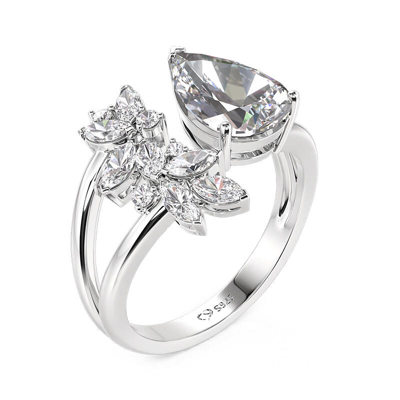 Jeulia Leaves Open Cluster Ring Sterling Silver Pear Cut