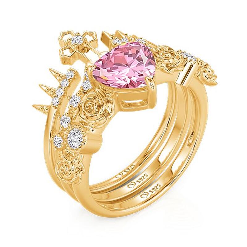 Jeulia Liberty Power Crown Rose Pink Heart Ring Set