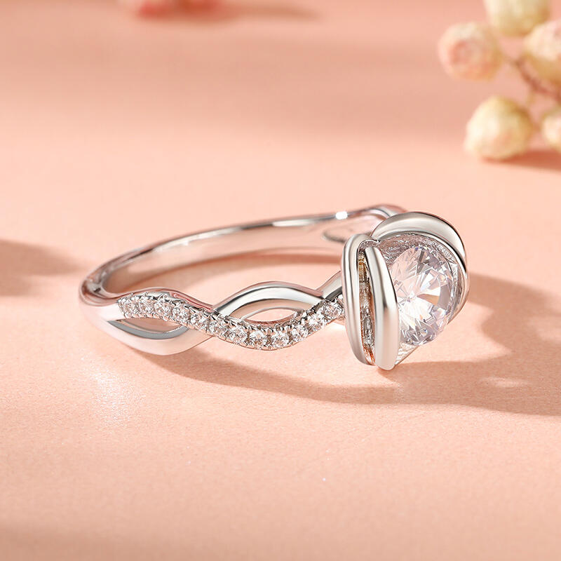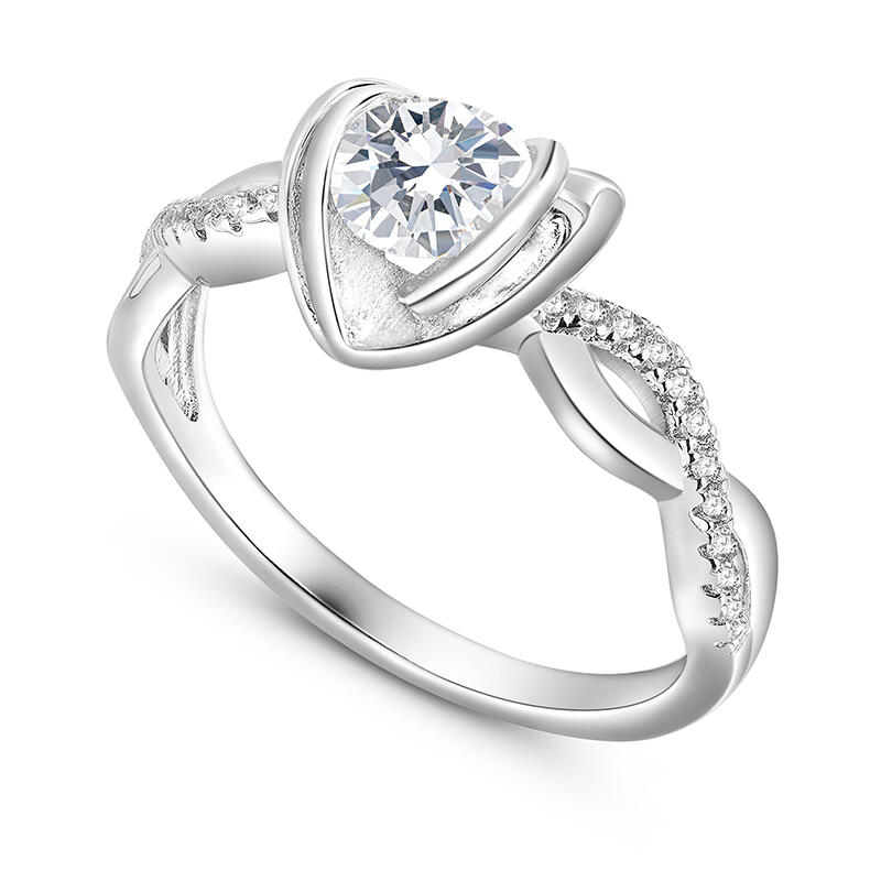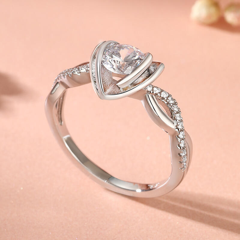 Eternally frame your heartfelt moment with this exquisite flower ring. The main stone is skillfully wrapped in a heart flower design, symbolizing blooming love and beauty. The walls of the cluster ring are meticulously incorporated with twist elements to create a modern and unique visual effect, bringing the overall design to life and layering. Whether it's to express your sincere feelings or to mark a special occasion, this flower ring with twisted arm design will be the perfect gift for your loved one.