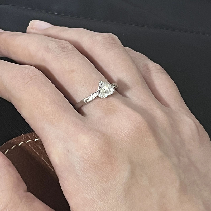 This custom heart promise ring for women exudes elegance and sweetness with a love heart main stone as the centerpiece and a soft rippled band arm. This heart promise ring can be customized with your preferred main stone and band arm design, perfectly symbolizing your unique love story and allowing love to blossom at your fingertips.