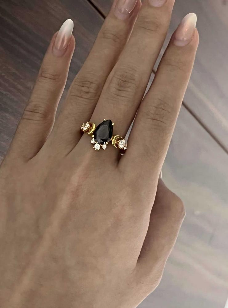 Jeulia Luna Astra Pear Cut Black Ring Sterling Silver
