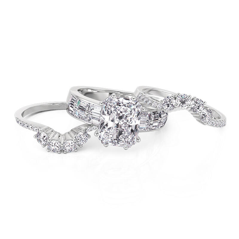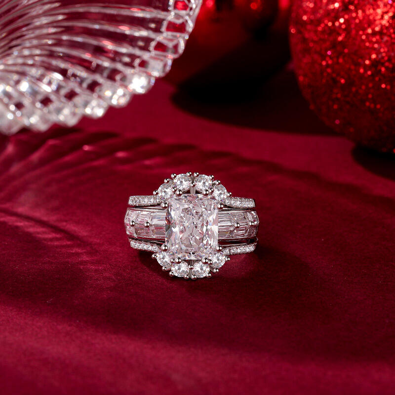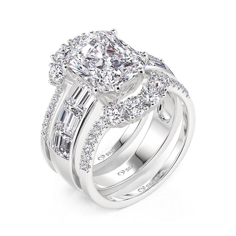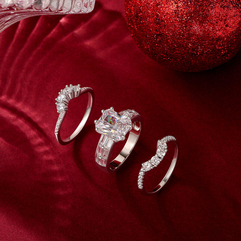 Three magnificent style puzzle ring set that defy eras: the widest, etched with Baroque scrollwork, cradles a cushion-cut gem in a filigree cage; the middle, a pave-studded ribbon, bends light into prismatic confetti; the slimmest, a hammered texture, carries the patina of imagined centuries. Stack them densely for victorian opulence, separate them into minimalist epochs, or let the gemmed ring band alone flirt with candlelight at galas. History isn’t linear here—it’s a wardrobe of moods, each layer a portal to a self you’ve yet to outgrow.