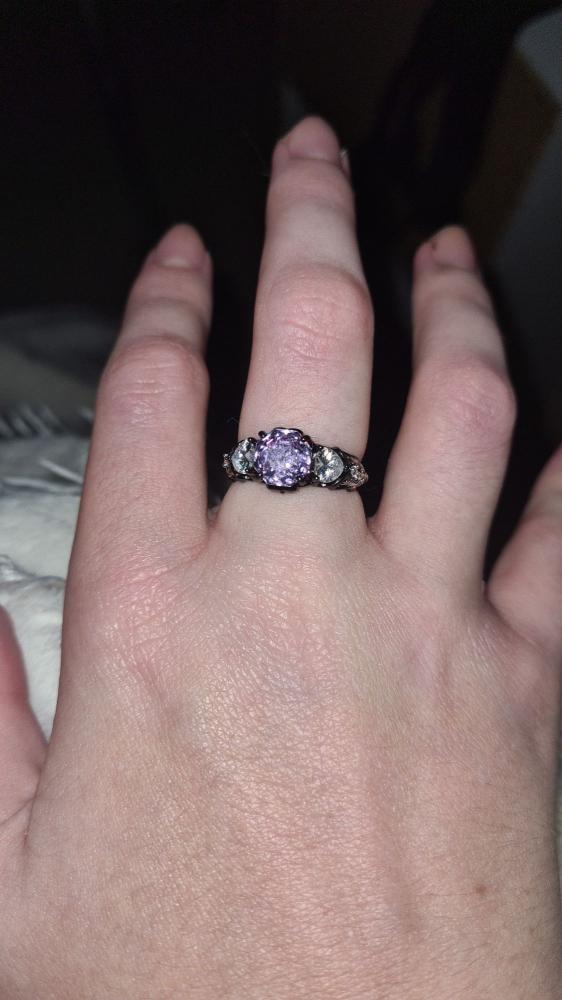 Jeulia Midsummer Night "Love-in-idleness" Three Stone Purple Rose Ring