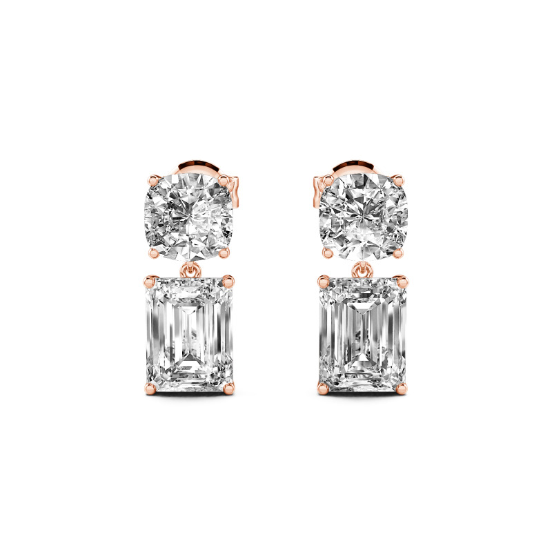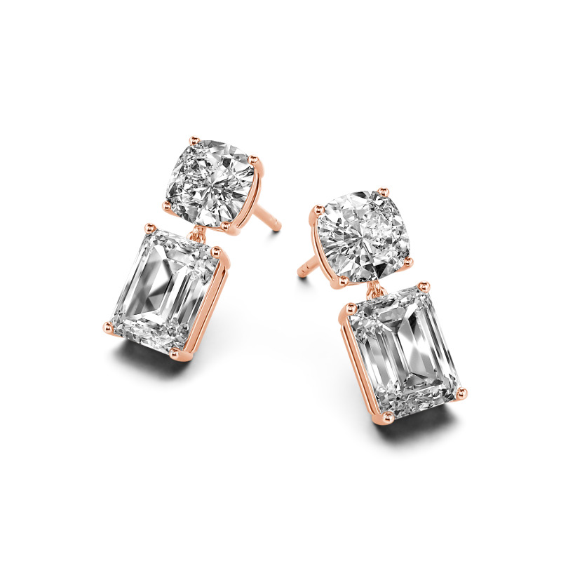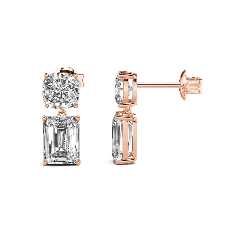 Jeulia 10K/14K/18K Gold Platinum Cushion & Emerald Cut Drop Earrings