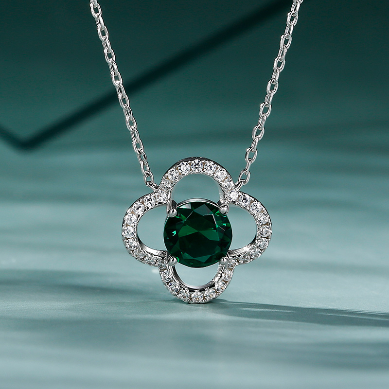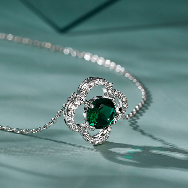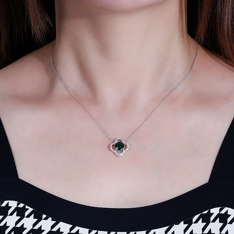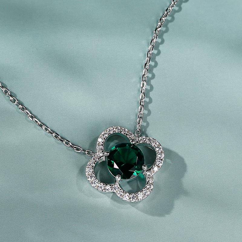 Jeulia 10K/14K/18K Gold Platinum Four Leaf Clover Round Cut Necklace