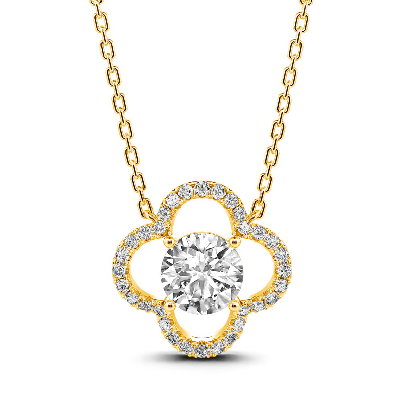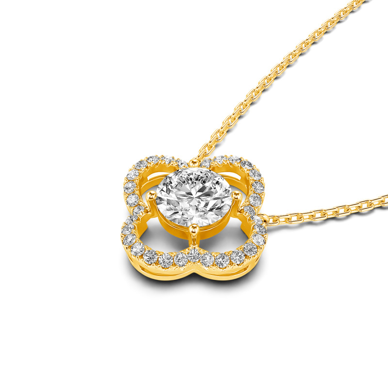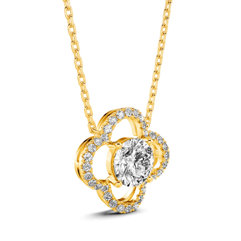 Jeulia 10K/14K/18K Gold Platinum Four Leaf Clover Round Cut Necklace