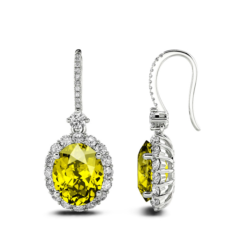 Jeulia 10K/14K/18K Gold Platinum Halo Oval Cut Drop Earrings