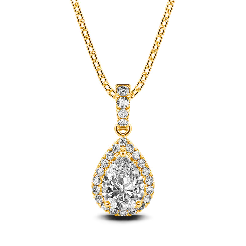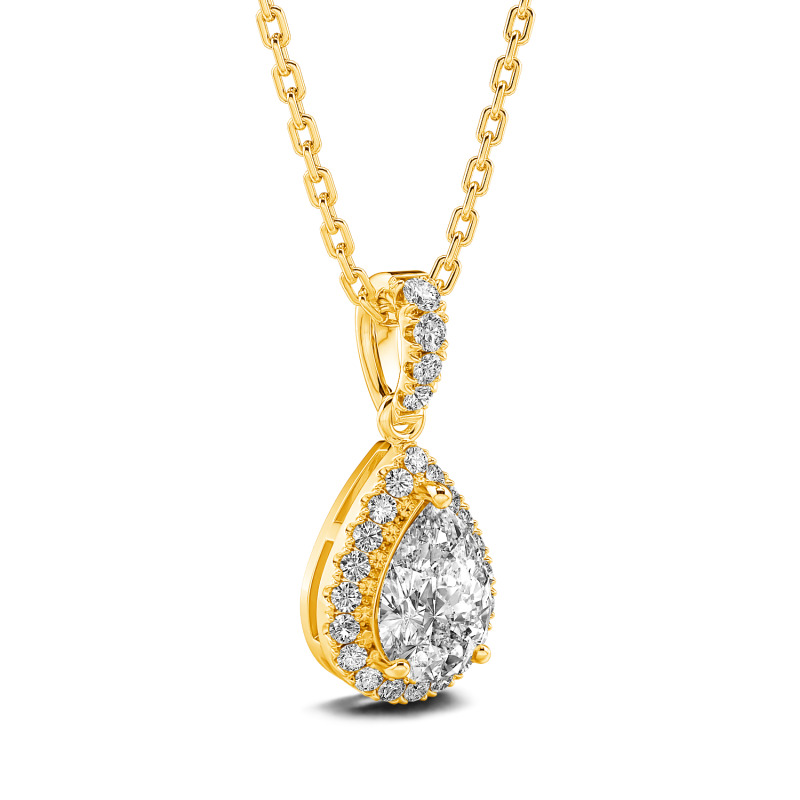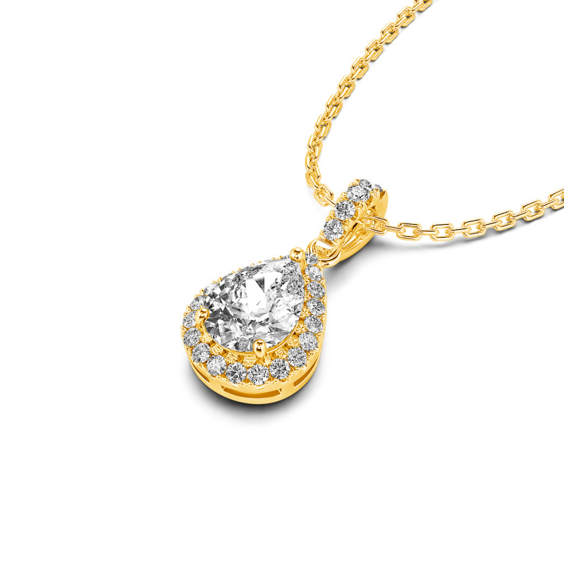 Jeulia 10K/14K/18K Gold Platinum Halo Pear Cut Necklace