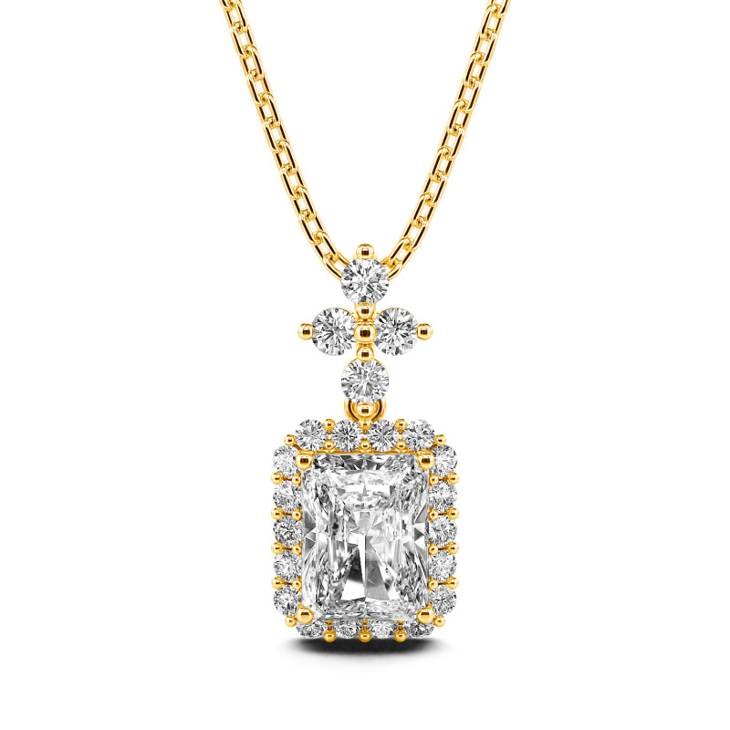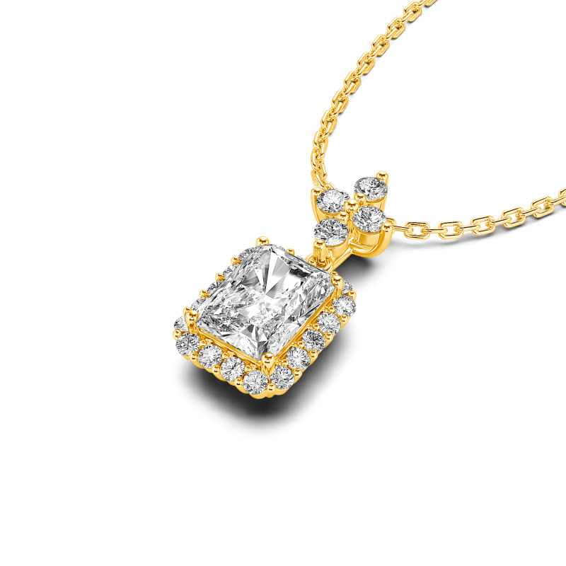 Jeulia 10K/14K/18K Gold Platinum Halo Radiant Cut Necklace