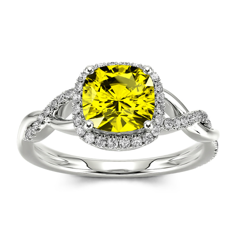 Jeulia 10K/14K/18K Gold Platinum Twist Halo Cushion Cut Ring Ornaments of Precious Metal
