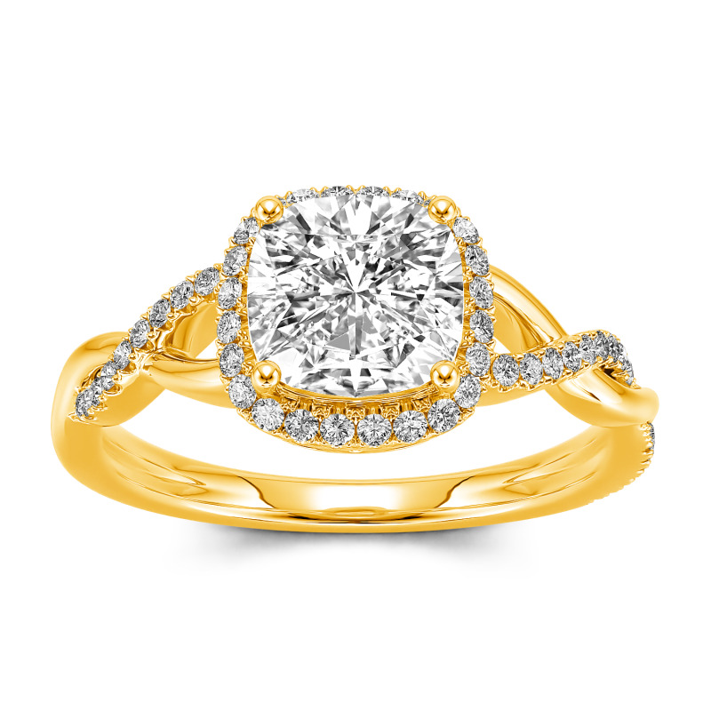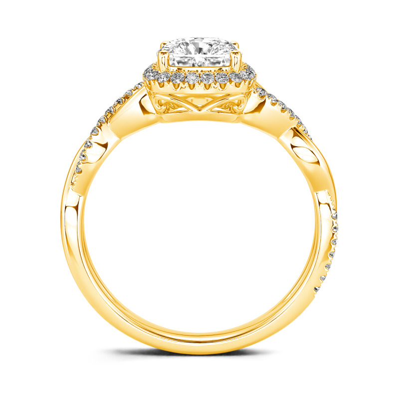Jeulia 10K/14K/18K Gold Platinum Twist Halo Cushion Cut Ring Ornaments of Precious Metal