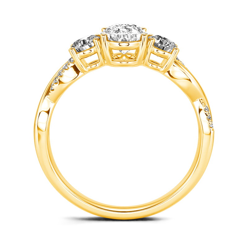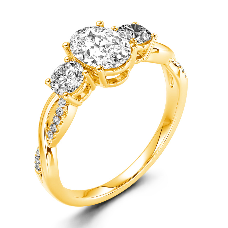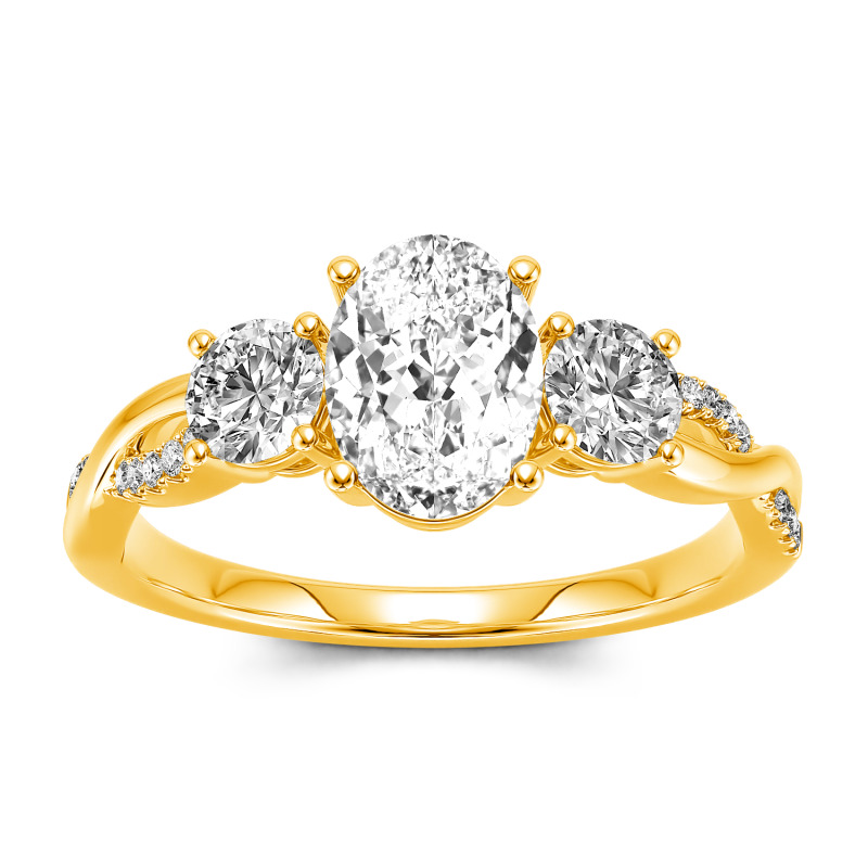Jeulia 10K/14K/18K Gold Platinum Twist Three Stone Oval Cut Ring