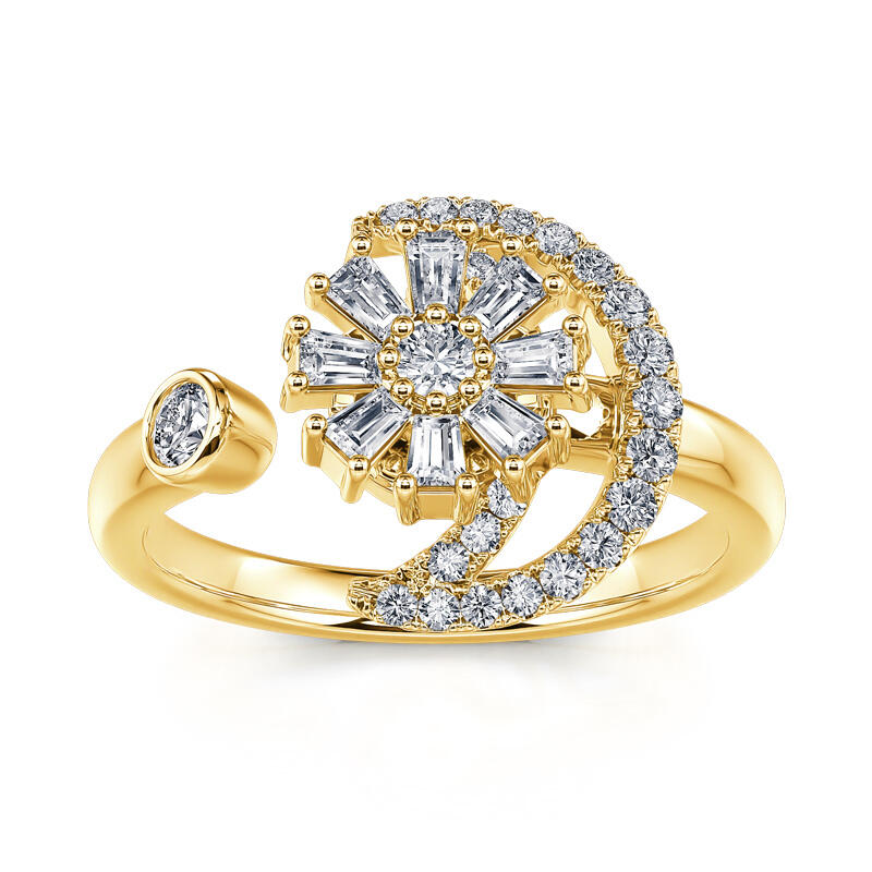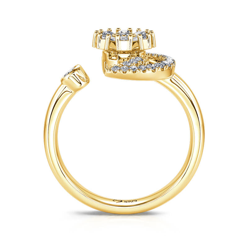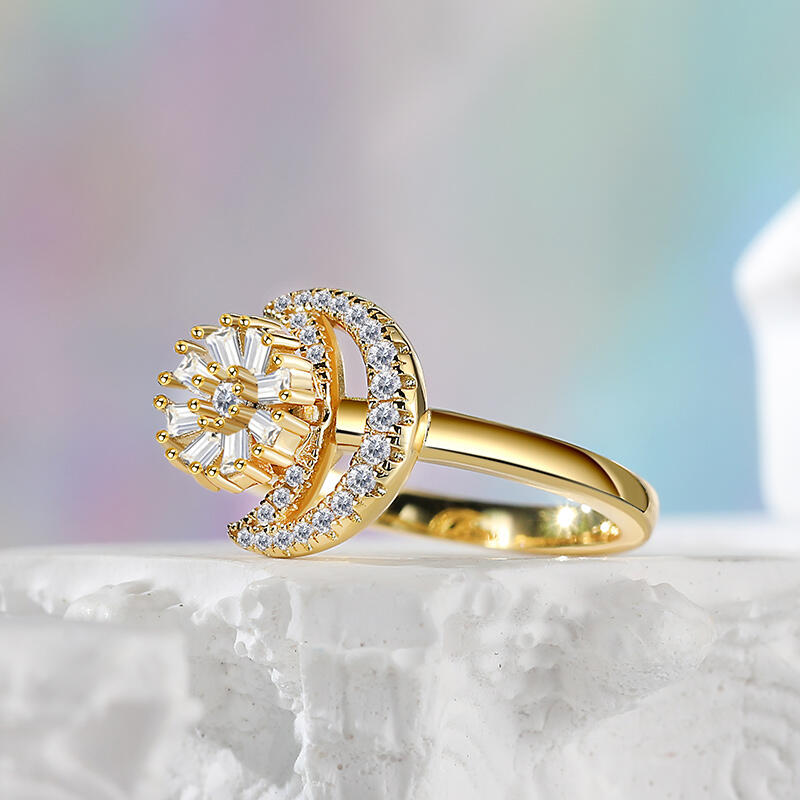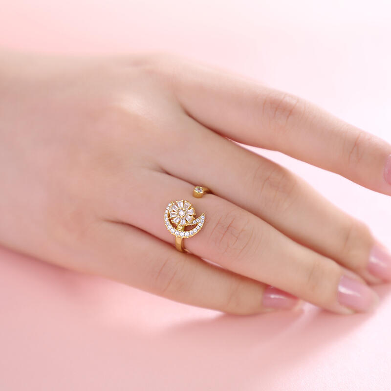 Jeulia Moon and Flower Sterling Silver Rotating Soothe Open Ring