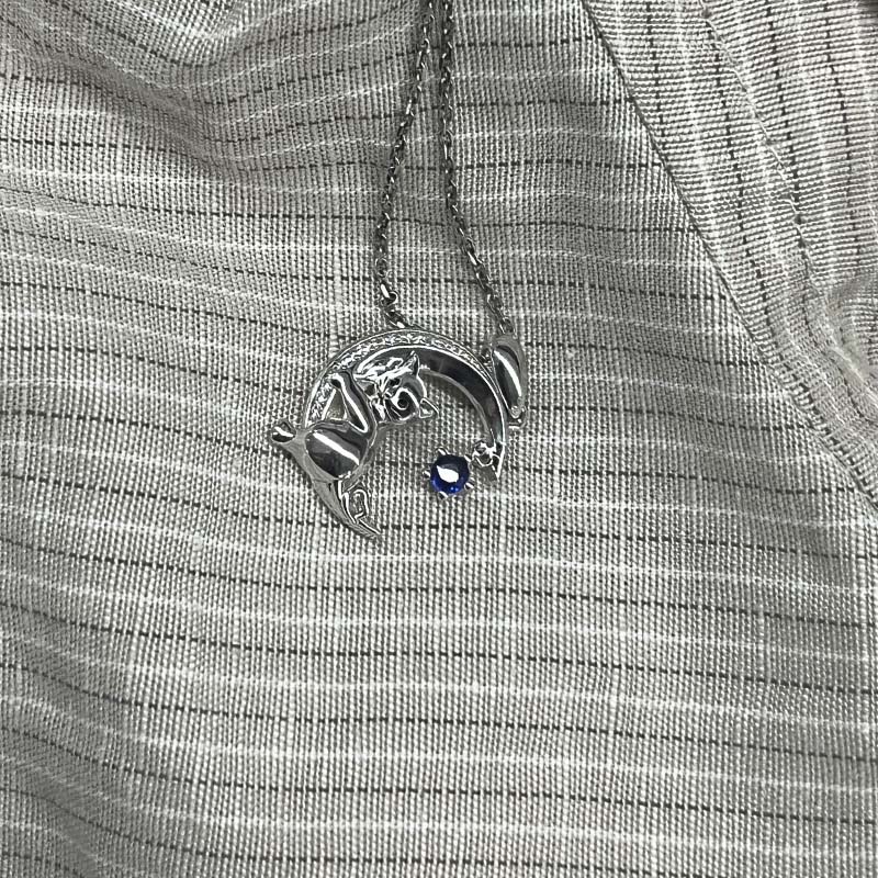 Jeulia Moon Huggers Custom Round Birthstone Cat Necklace