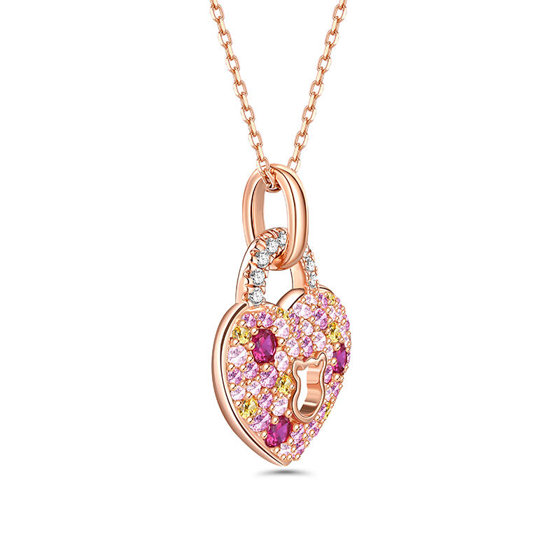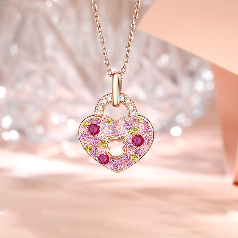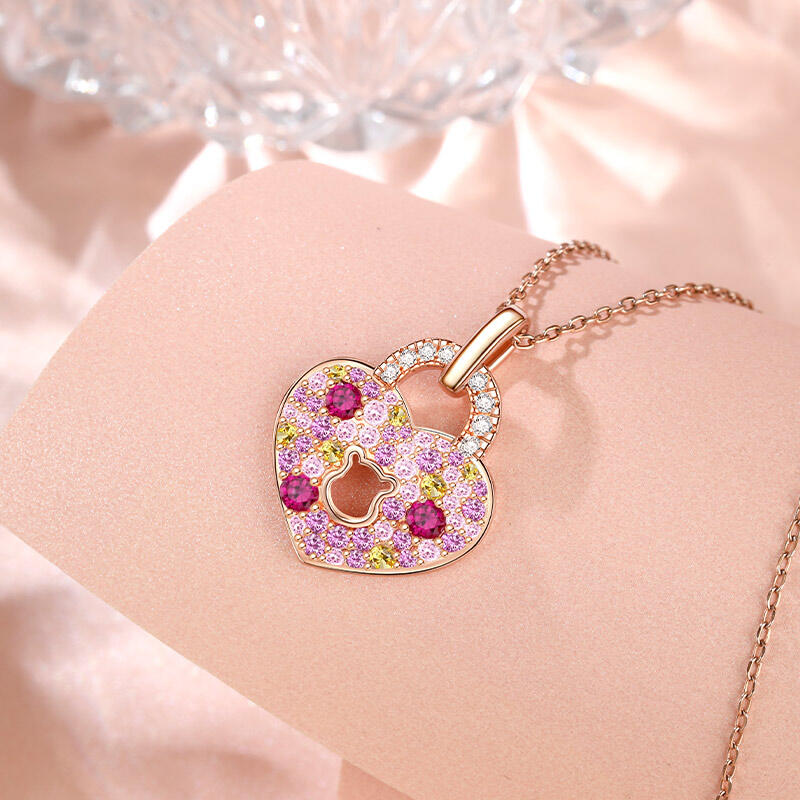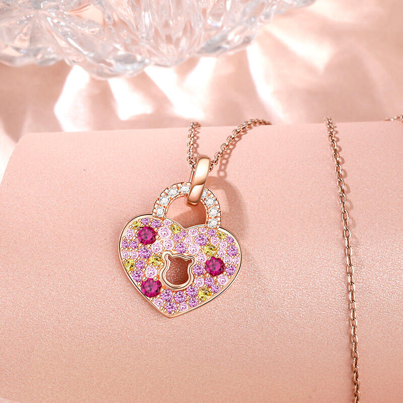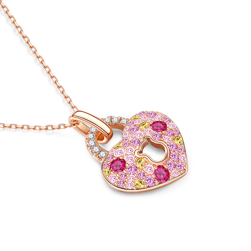 Jeulia Multi-color Heart Lock Bear Keyhole Sterling Silver Necklace