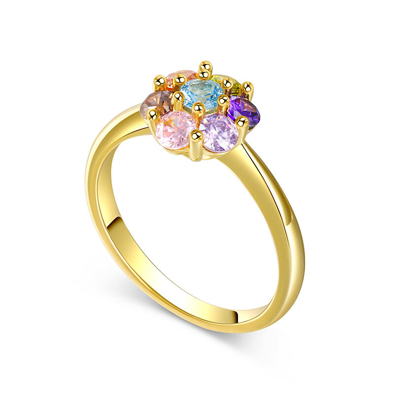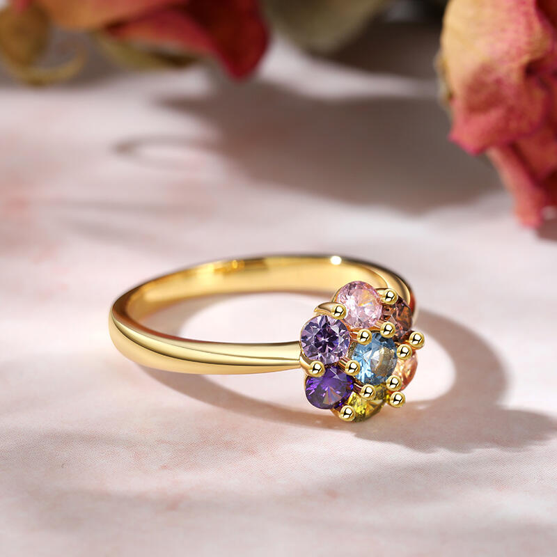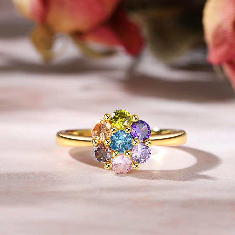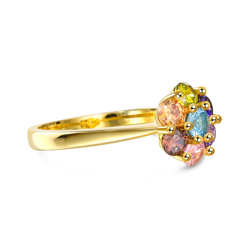Flaunt a dainty bit of the rainbow in this stunning ring, featuring a six-petal flower composed of sparkly multi-colored stones and set into a delicate band. Add this ring as a cute pop of color to your everyday charm ring stack for an adorable vibe.