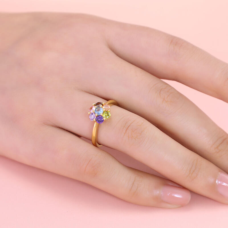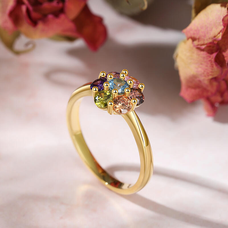 Jeulia Multi-Colored Stones Round Cut Flower Rainbow Sterling Silver Ring
