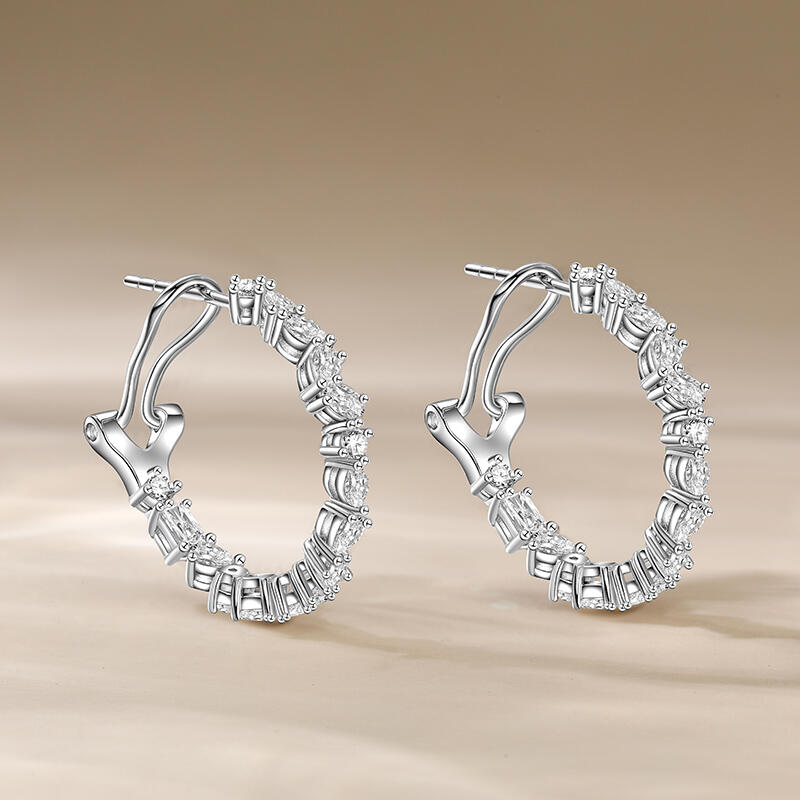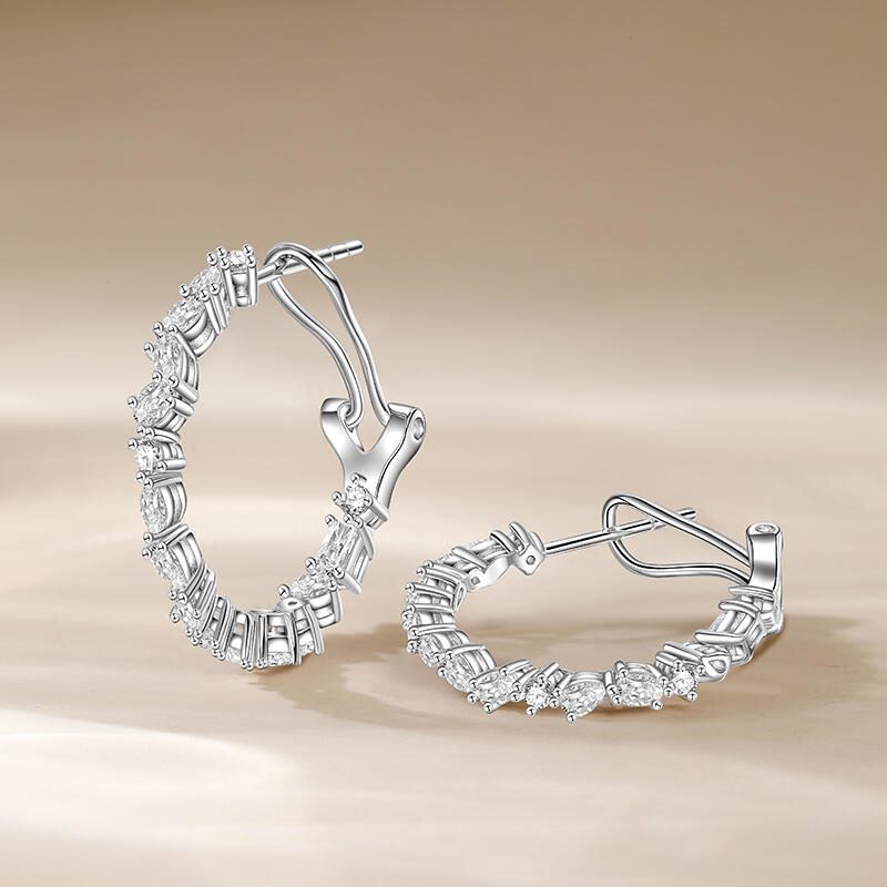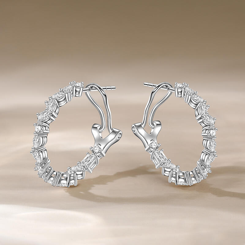 These stunning hoop earrings adorned with an array of multi-shaped stones. These exquisite earrings are a true celebration of diversity and individuality, featuring a mesmerizing display of stones in various shapes and sizes that come together to create a harmonious and vibrant composition. Wear these hoop earrings for a bold and expressive display of your unique style and personality.