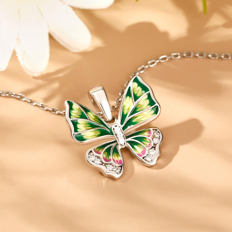 Jeulia "Mystical Butterfly" Enamel Sterling Silver Necklace