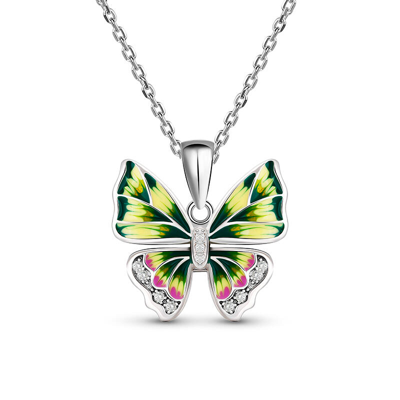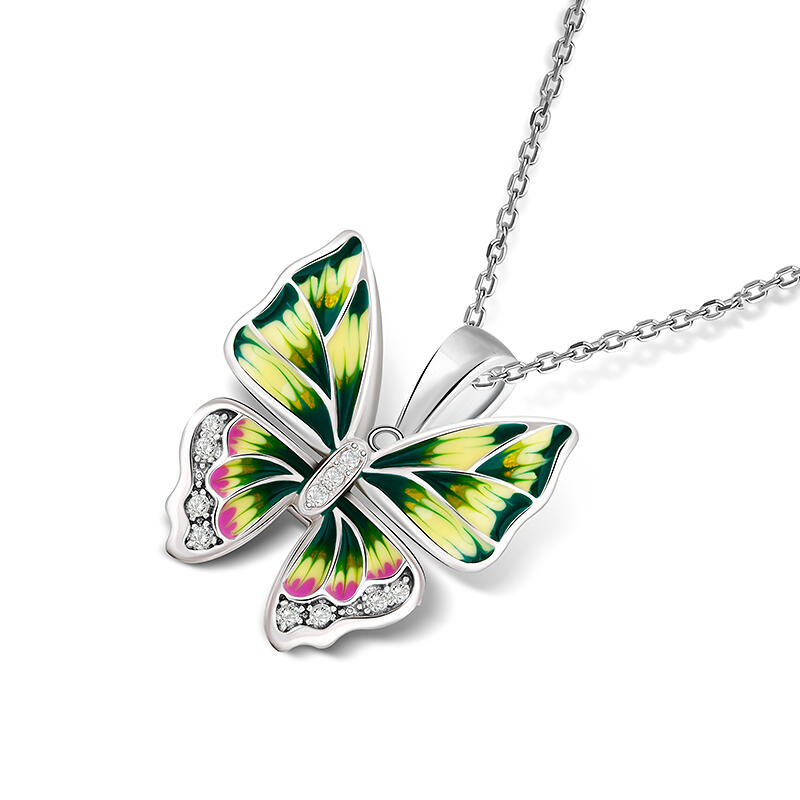 Add sparkle to your look with this butterfly-inspired necklace. Beautiful enamel design with vibrant colours and wings that'll define the Spirit of You. This intricate design is handcrafted using the legendary art of enameling, with sparkling stones that recreate the charm of the butterfly. Inspired by the beauty of nature, this will brighten up even the dullest of days in your life. Vibrant and full of life, this beautiful butterfly is ready to land in your jewelry box.