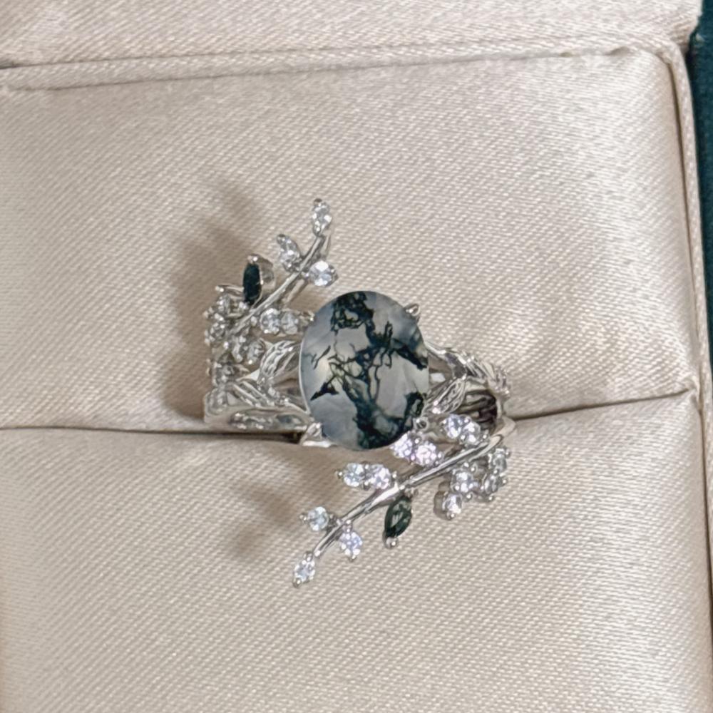 Immerse yourself in the enchanting world of nature with the Jeulia 2PCS nature inspired vine leaf moss agate ring set. At the center of the ring lies a captivating moss agate stone, its unique patterns resembling delicate tendrils of moss or intricate forest scenes, making every piece one - of - a - kind. The stones are framed by vine - leaf designs, adorned with sparkling stones that mimic glistening dewdrops on leaves at dawn. The two rings in this set can be worn together to create a harmonious, layered look that truly captures the essence of nature's elegance, or separately to add a touch of natural charm to any outfit. Whether you're a nature enthusiast or simply someone who appreciates unique, artisanal jewelry, this nature inspired ring set is perfect for expressing your individuality.