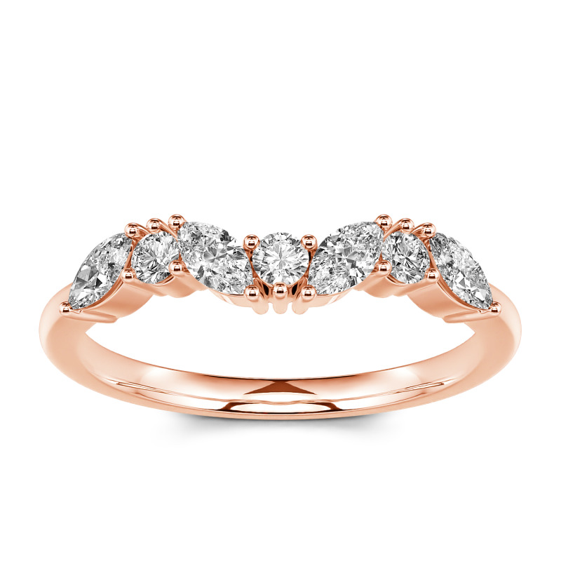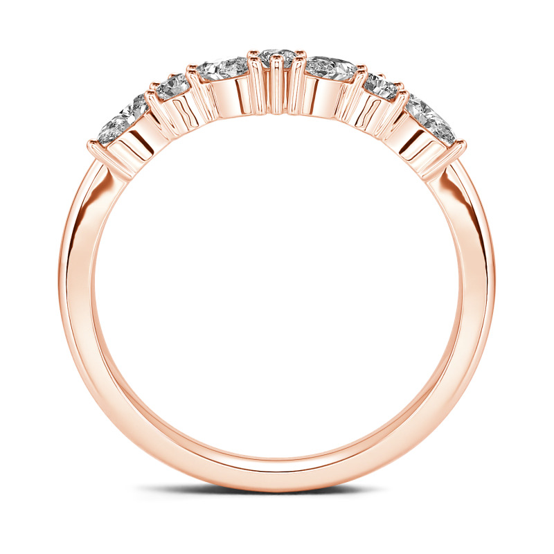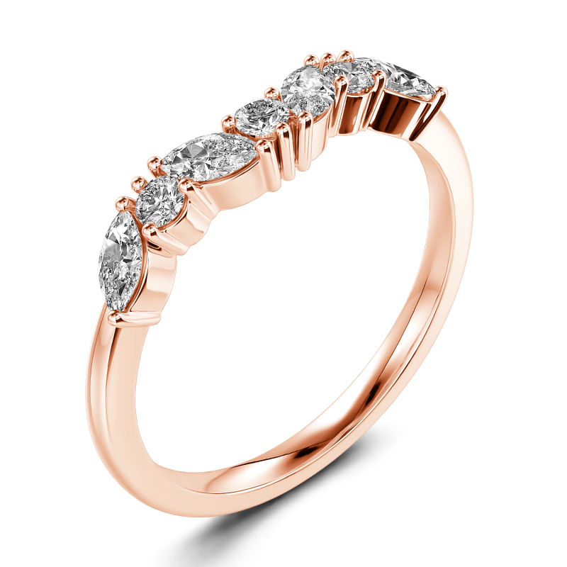 Inspired by the endearing shapes of flowers, this moissanite ring sees a line of round and marquise-shaped stones alternately emerge from a tender curve. Transposing the growth of flora into this exquisite band allows you own never-fading cute petals. The metal’s gentle tone and special pattern lend the piece warmth and sophistication, with each stone whole-heartedly crafted. This is the one designed to be worn for a lifetime.