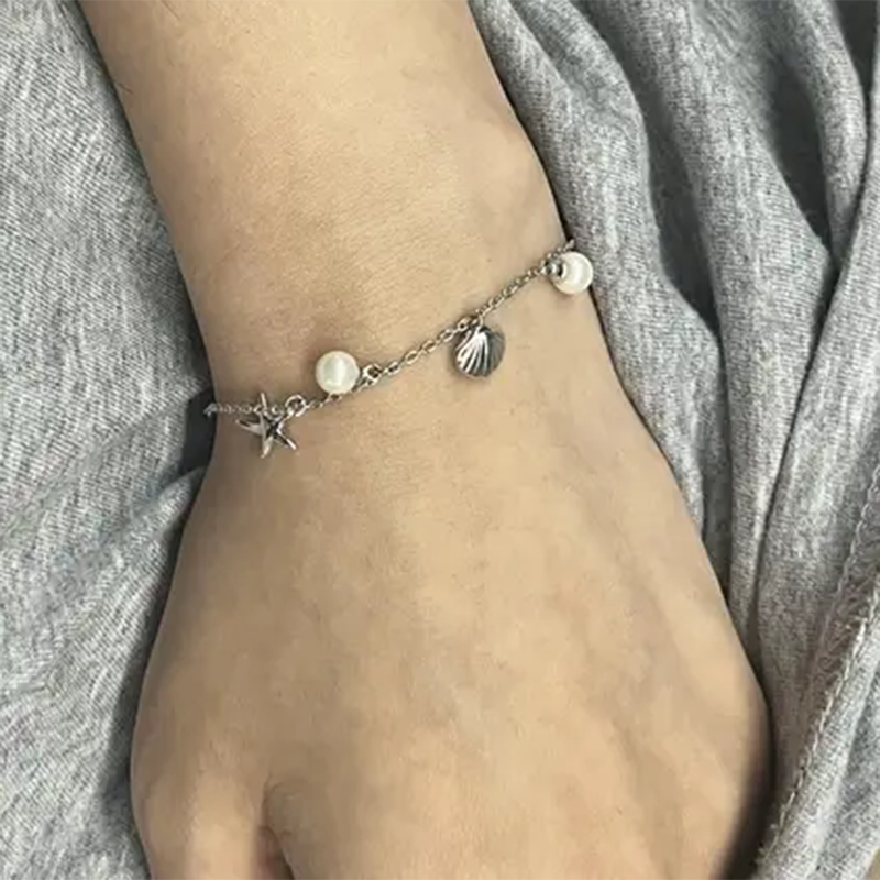 Jeulia Ocean Beach Silver Pearl Charm Bracelet