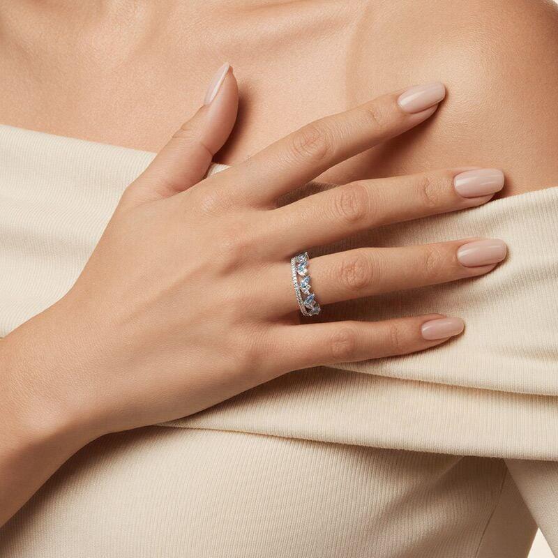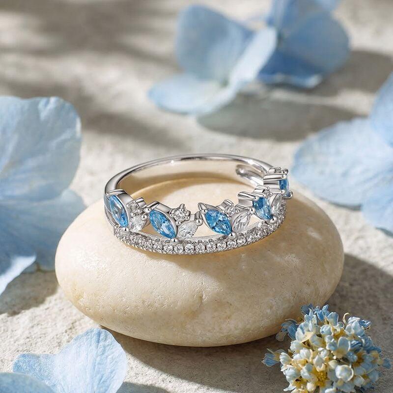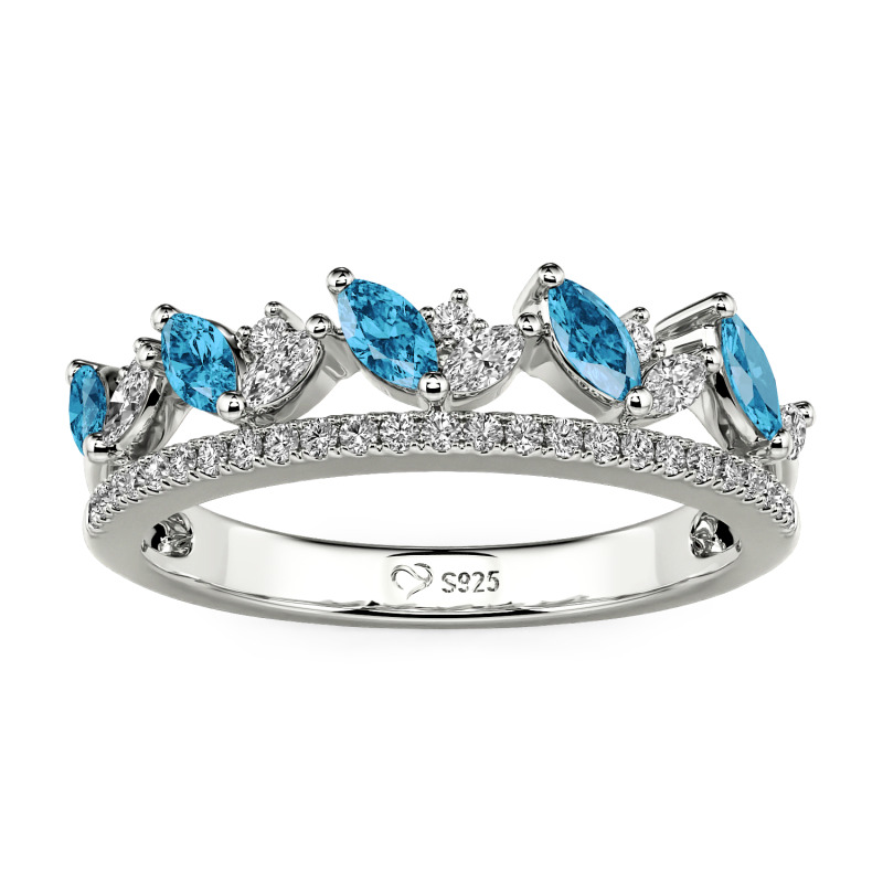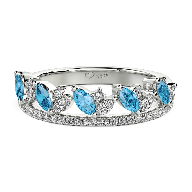 Marquise-cut sapphires nestle among clear stones in a clustered double band, the upper layer blooming like wildflowers while the lower layer's scattered pavé catches light from below. Every element bends to your vision—metal cooled or warmed, gems chosen in colors only you would know—making this Jeulia Double Row Cluster Wedding Band layer not just stones, but meaning, like a garden planted exactly to your season.
