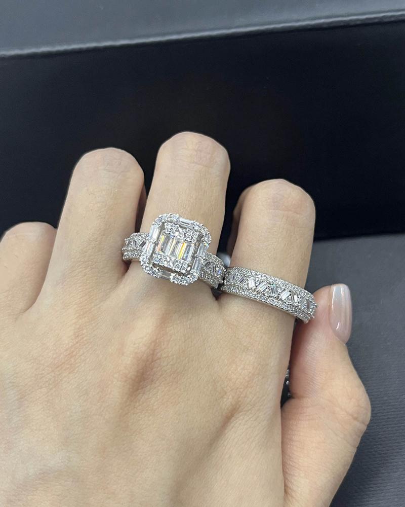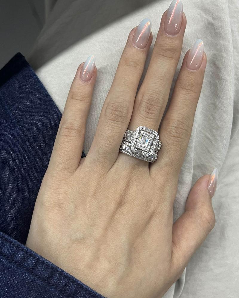 Jeulia Olivetta Square Halo Engagement Ring Set