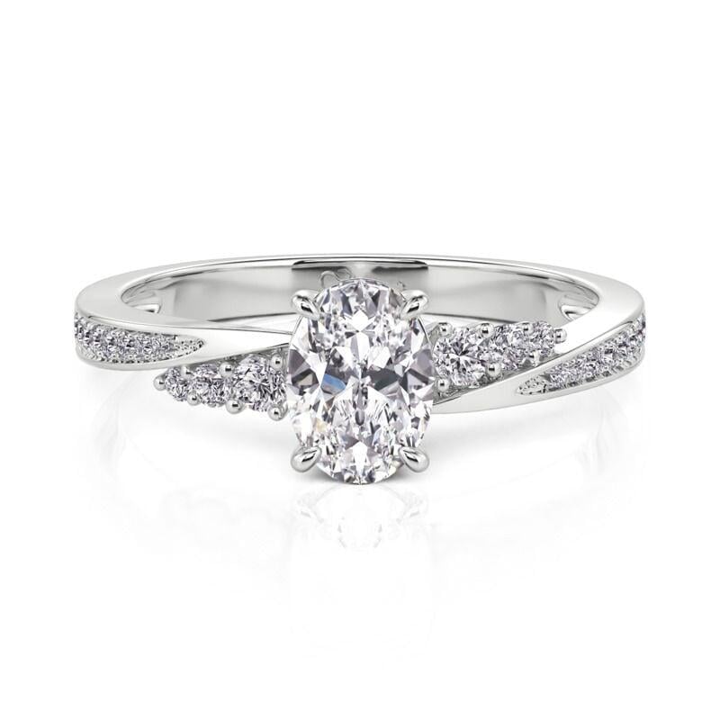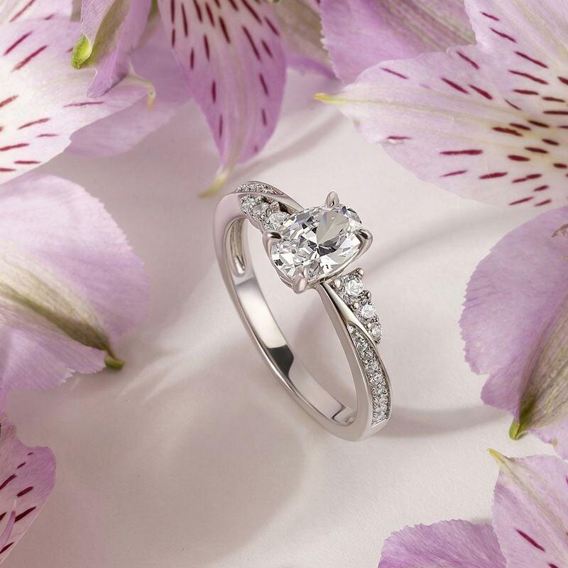 Jeulia Oval Cut Bypass Engagement Ring Sterling Silver