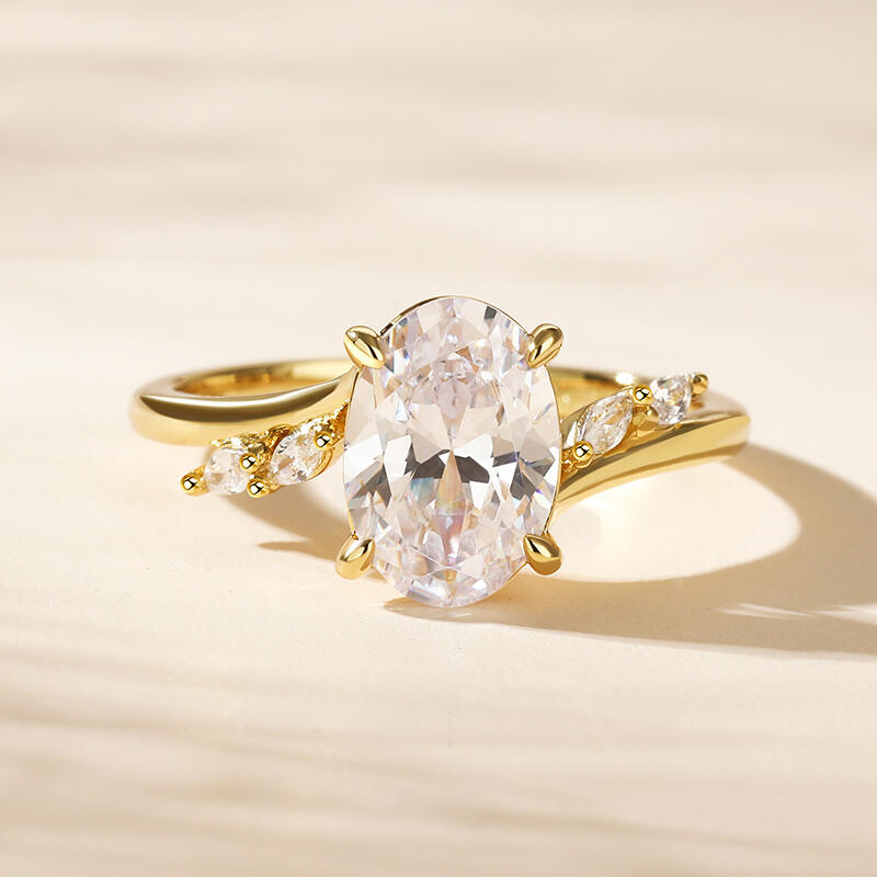 Jeulia Oval Cut Gold Tone Sterling Silver Engagement Ring