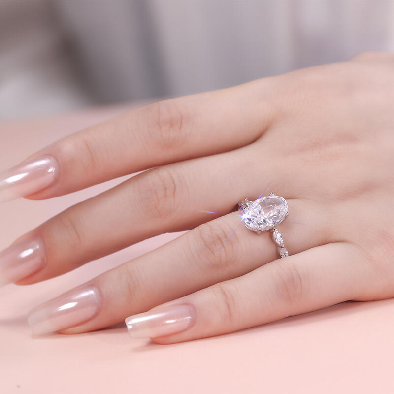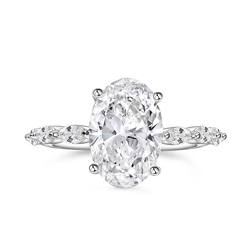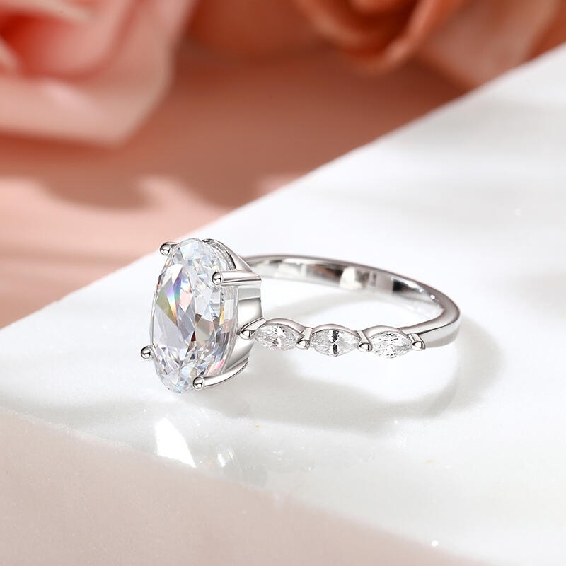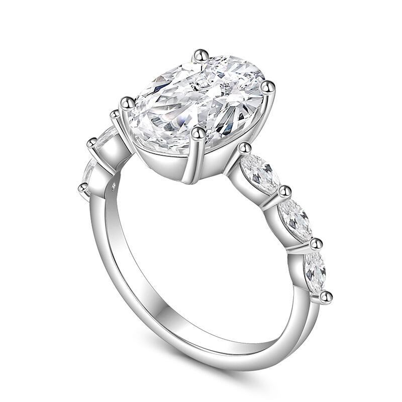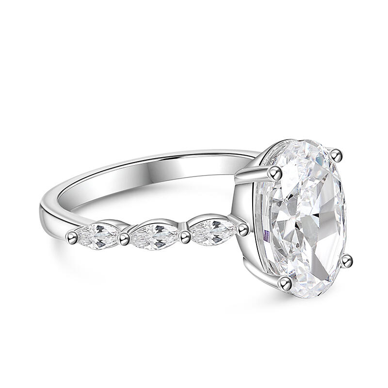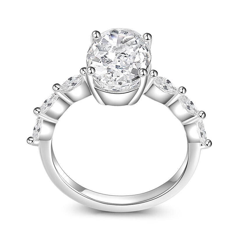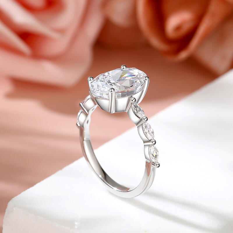 Jeulia Oval Engagement Ring Sterling Silver with Six Marquise Side Stone