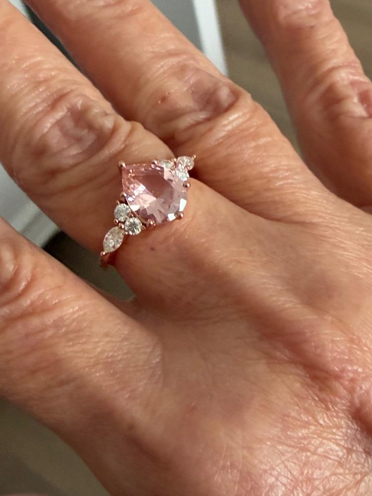 Jeulia Pear Cut Synthetic Morganite Sterling Silver Ring