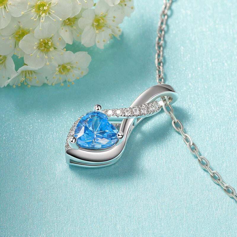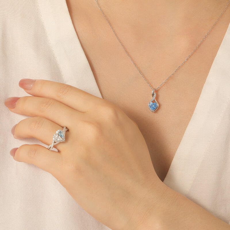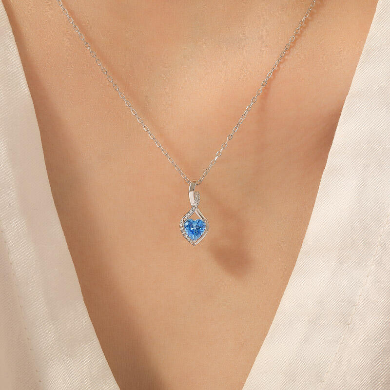 Elevate your jewelry collection with our personalized halo heart necklace with twist design. At the heart of this necklace lies a stunning heart-cut stone, meticulously crafted to capture the essence of love and romance. The heart shape, a universal symbol of affection, is enhanced by a delicate halo setting that surrounds the gemstone with a sparkling ring of smaller stones. The twist motif symbolizes the intertwining of hearts and the unique journey of love, making this halo heart necklace a meaningful and sentimental choice for any occasion. One of the most outstanding features of this halo heart necklace is its personalization options. You are free to choose the color of the metal and the color of the stone that best suits your style, and express your personality through the combination of tones.