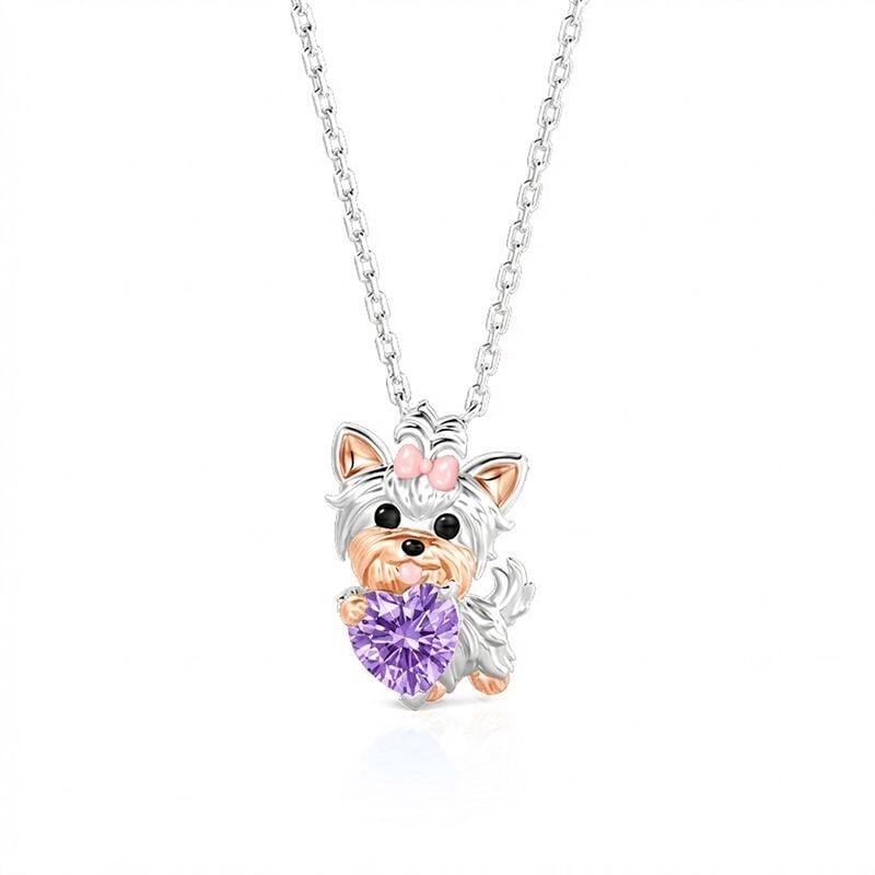 Jeulia Petland Custom Birthstone Yorkshire Terrier Necklace