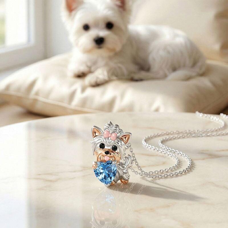 This adorable dog necklace from the Jeulia Petland collection captures the charm of a Yorkshire Terrier, complete with its signature fluffy coat and a sweet pink bow. The playful Yorkie holds a heart-shaped birthstone at its chest—customizable to reflect a meaningful month or a favorite color—adding a personal touch to the design. Crafted with meticulous detail and set on a delicate chain, this personalized birthstone necklace is a joyful piece for everyday wear, whether celebrating your own furry companion or delighting a fellow dog lover with a thoughtful, one-of-a-kind gift.