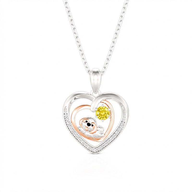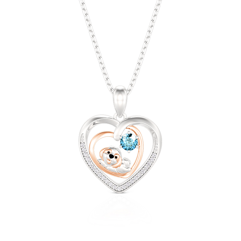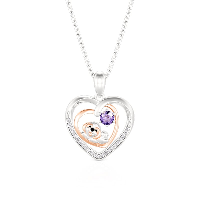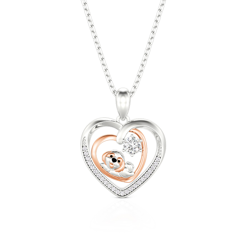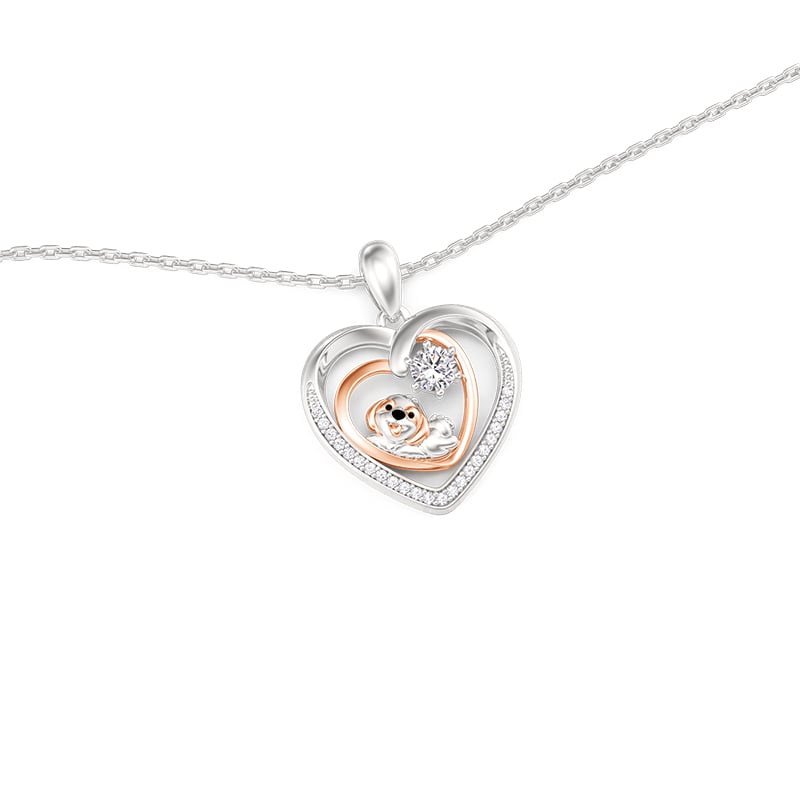 This adorable two tone necklace from Jeulia’s Petland collection features a playful Shih Tzu puppy nestled inside a layered double-heart frame. The silver outer heart is lined with pavé stones, while the rose gold inner heart adds a warm two-tone contrast. A customizable round-cut birthstone sits at the top, letting you honor a beloved pet or a special memory. Lightweight and designed for everyday wear, this dog necklace is a charming way to keep your furry friend close—whether for anniversaries, quiet moments, or simply celebrating the joy your pet brings each day.