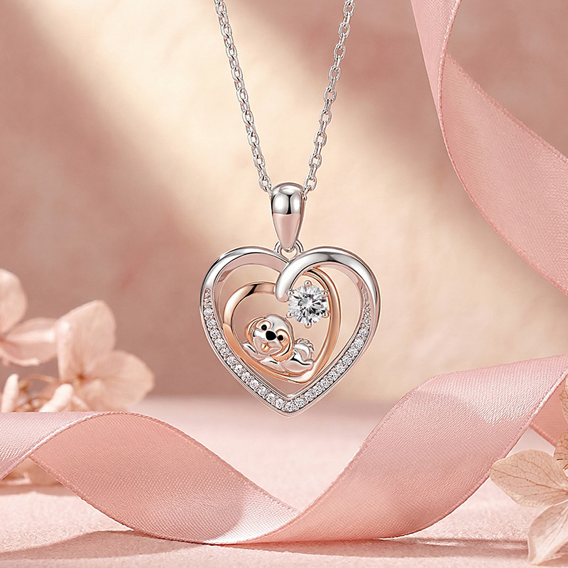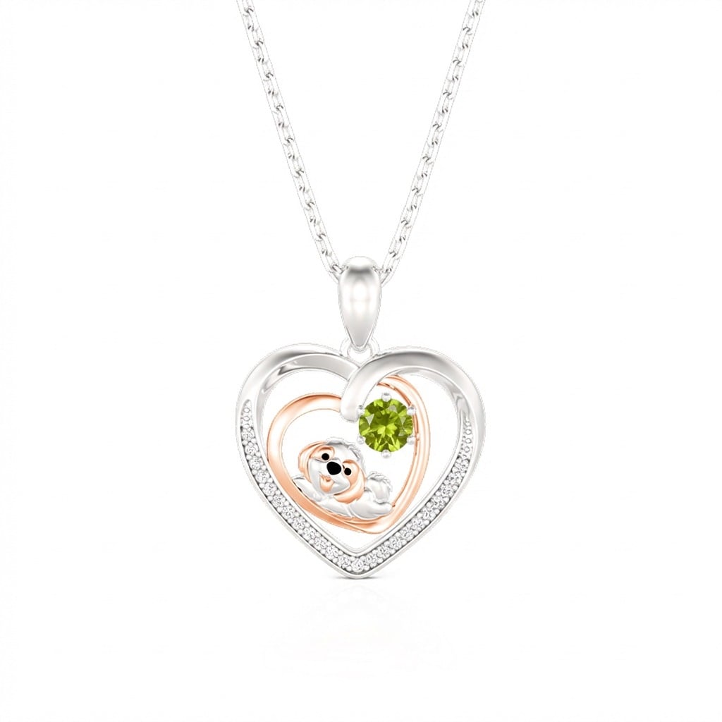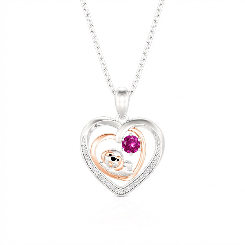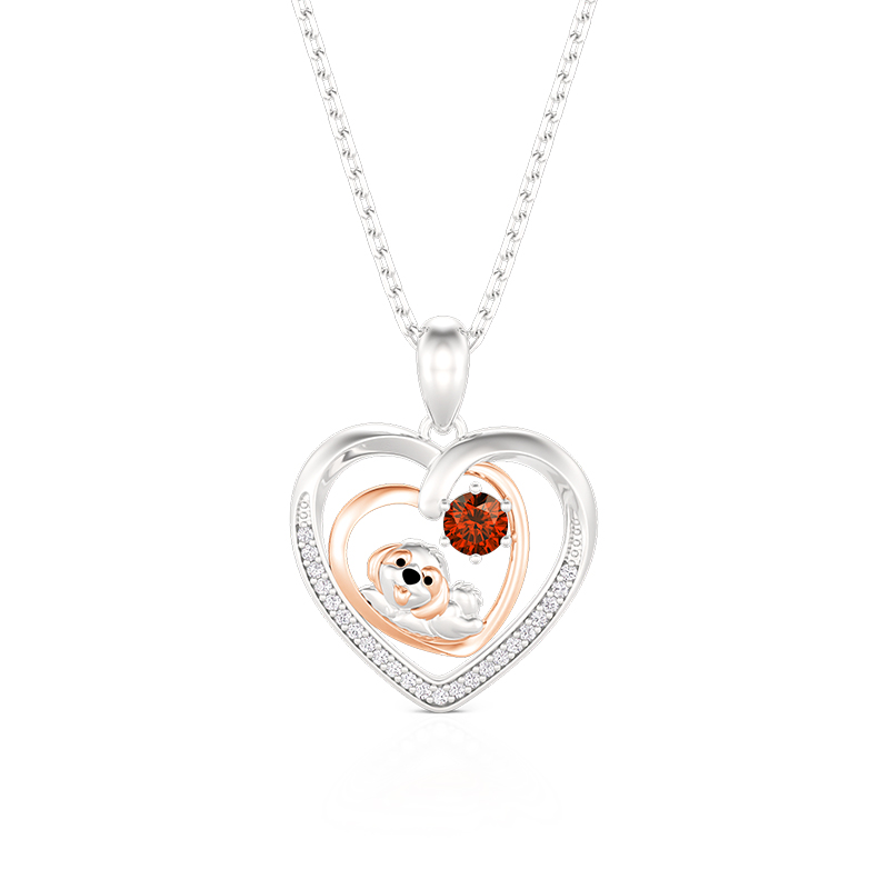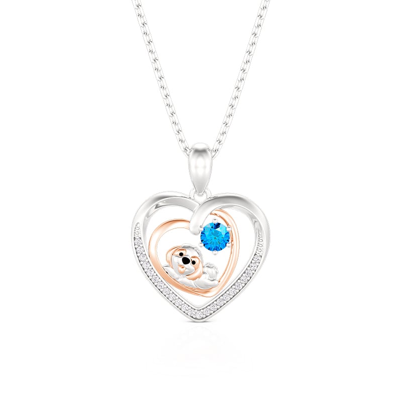 This adorable two tone necklace from Jeulia’s Petland collection features a playful Shih Tzu puppy nestled inside a layered double-heart frame. The silver outer heart is lined with pavé stones, while the rose gold inner heart adds a warm two-tone contrast. A customizable round-cut birthstone sits at the top, letting you honor a beloved pet or a special memory. Lightweight and designed for everyday wear, this dog necklace is a charming way to keep your furry friend close—whether for anniversaries, quiet moments, or simply celebrating the joy your pet brings each day.