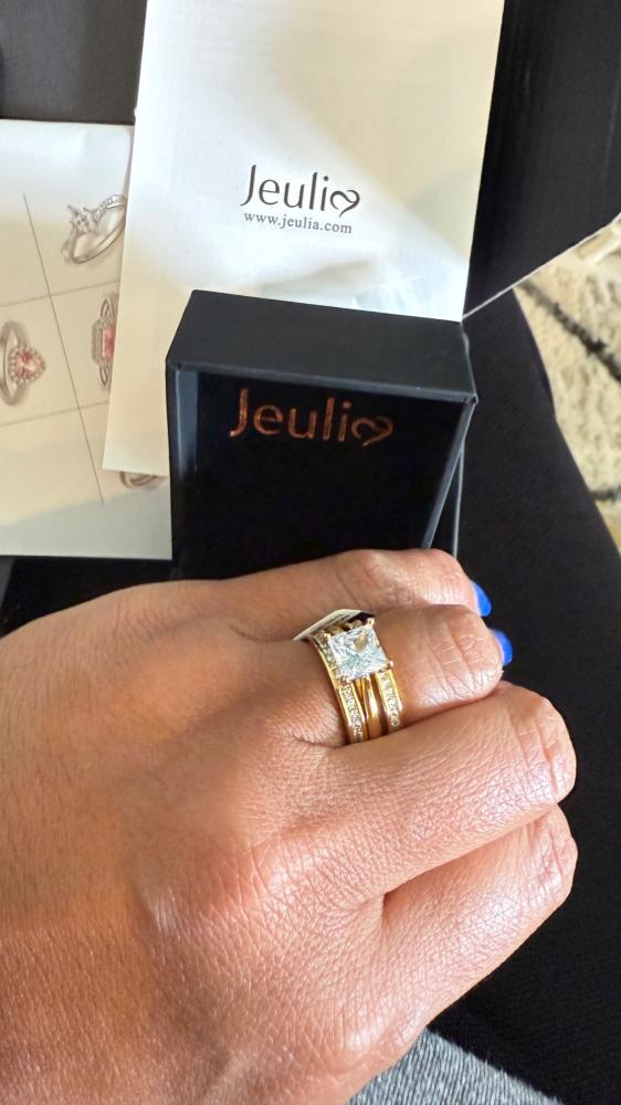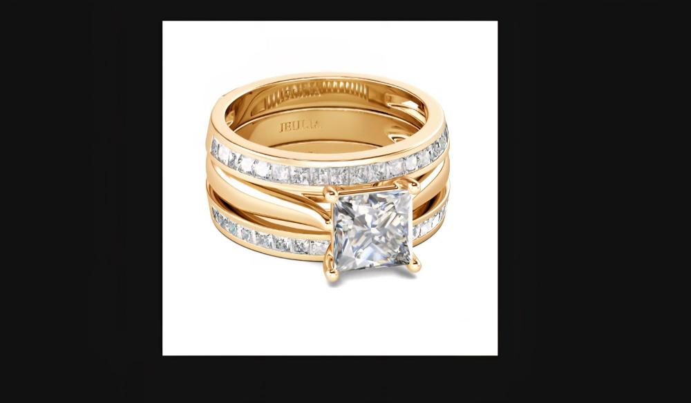 Jeulia Princess Cut Enhancer Sterling Silver Ring Set