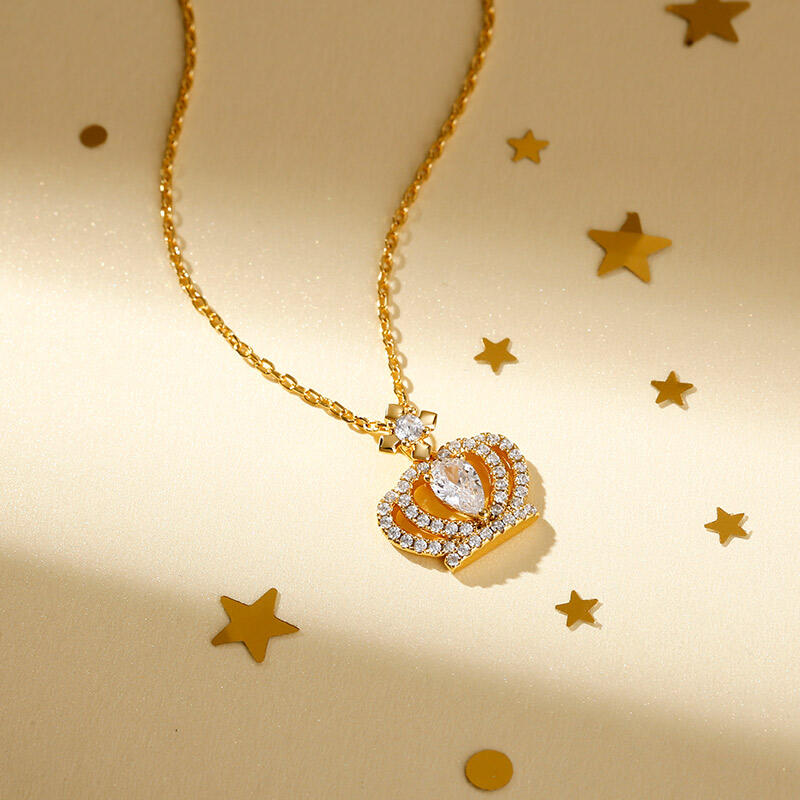 Fit for a queen, this gorgeous crown pendant is a regal addition to her wardrobe. Crafted in sterling silver, this stunning design shimmers with ribbons of sparking stones that catch the eye. With our beautiful princess crown necklace you will feel like a queen or a princess every day. Travel with us in the magical world of castles and palaces.