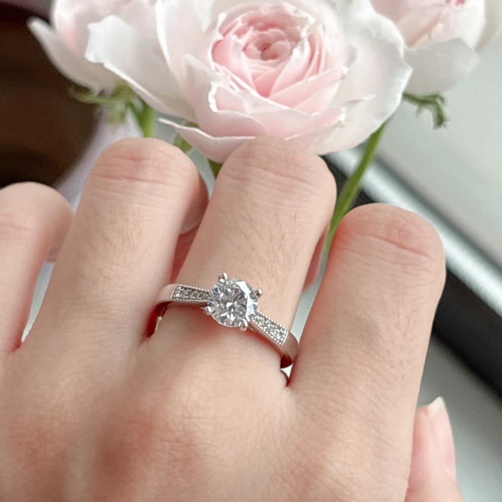 Jeulia Reverse Tapered Beaded Round Solitaire Engagement Ring