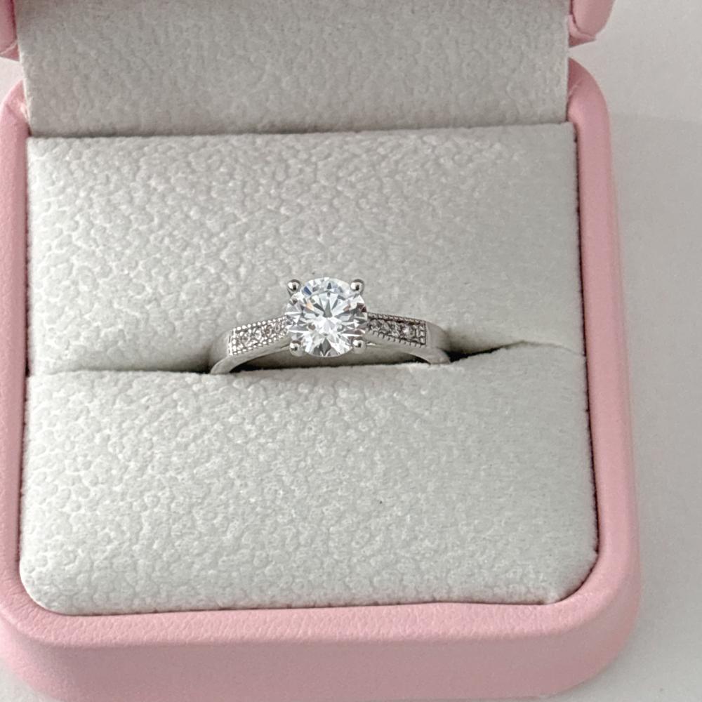 Celebrate eternal love with the Jeulia beaded round solitaire reverse tapered engagement ring. At its heart, a dazzling round - cut stone takes center stage, radiating brilliant sparkle. The band features a unique reverse - tapered design, narrowing gracefully toward the center, and is adorned with delicate beading that adds texture and charm. Crafted with precision, this reverse tapered ring blends timeless elegance with modern flair. Perfect for proposals or marking special moments, it’s a symbol of your unbreakable bond. Let this round solitaire ring be the shining emblem of your love story.