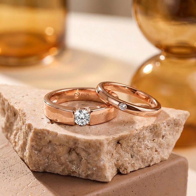 This classic moissanite band is a symbol of enduring love. Timeless and traditional, it features an alluring addition of a round-cut stone set into its band. The tone imbues this piece with a contemporary resonance. Dedicatedly created, the ring serves as a visual reminder of a loved one, making a natural choice for a wedding ring.