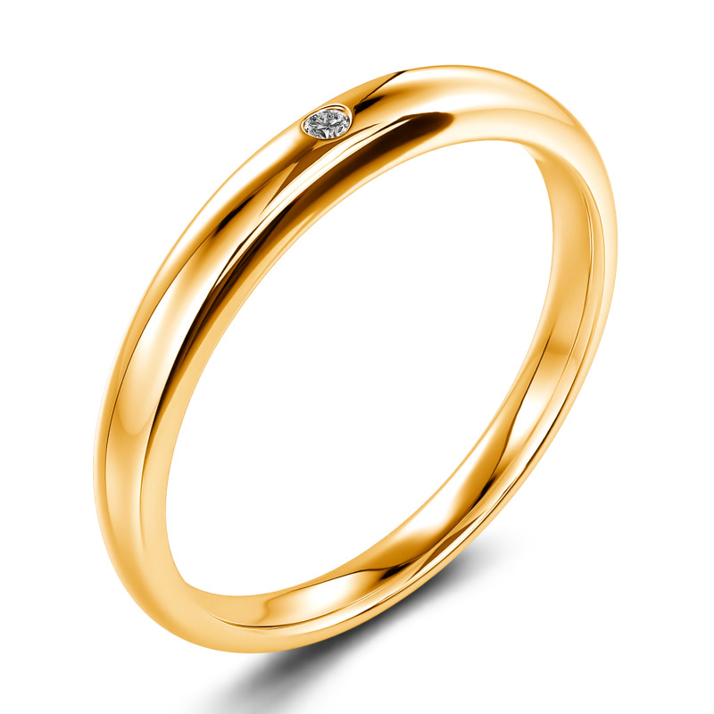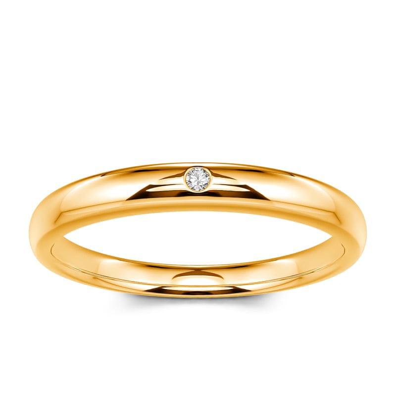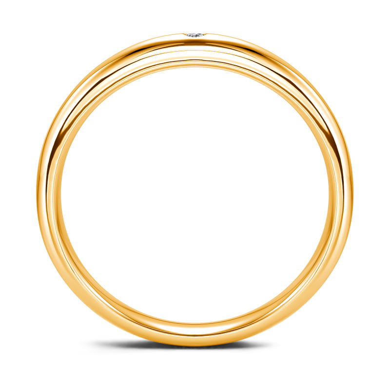 This classic moissanite band is a symbol of enduring love. Timeless and traditional, it features an alluring addition of a round-cut stone set into its band. The tone imbues this piece with a contemporary resonance. Dedicatedly created, the ring serves as a visual reminder of a loved one, making a natural choice for a wedding ring.
