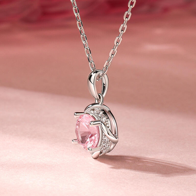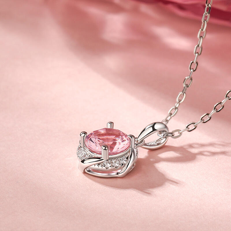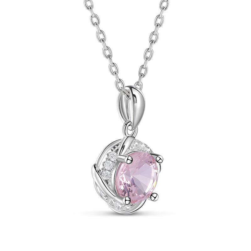 Jeulia Round Cut Twisted Synthetic Morganite Sterling Silver Necklace
